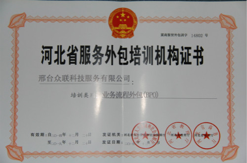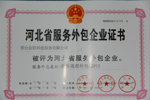 鑒于公司2011年12月申請《河北省服務(wù)外包企業(yè)證書》和《河北省服務(wù)外包培訓(xùn)機(jī)構(gòu)證書》兩項證書有效期限三年到期,我公司于2014年12月再次向河北省商務(wù)廳申請延續(xù),經(jīng)省商務(wù)廳審核,我公司目前發(fā)展情況符合河北省服務(wù)外包企業(yè)和河北省服務(wù)外包培訓(xùn)機(jī)構(gòu)評定標(biāo)準(zhǔn),于2015年3月成功延續(xù)《河北省服務(wù)外包企業(yè)證書》和《河北省服務(wù)外包培訓(xùn)機(jī)構(gòu)證書》。