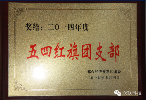 今年“五四”青年節(jié)期間,共青團(tuán)開發(fā)區(qū)委表彰了區(qū)內(nèi)一批先進(jìn)團(tuán)組織和先進(jìn)團(tuán)員,我公司榮獲了2014年度“五四紅旗團(tuán)支部”榮譽稱號。