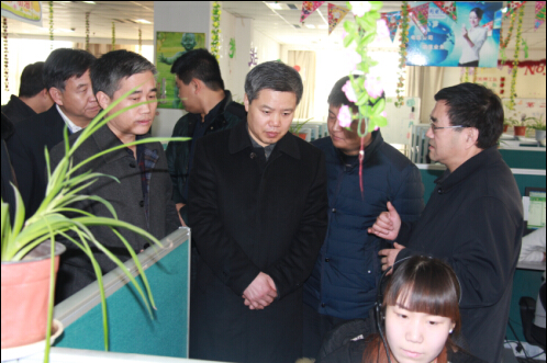 2015年12月4日上午,邢臺市代市長董曉宇、副市長郭旭濤、邢臺市商務(wù)局局長任玉波、邢臺市開發(fā)區(qū)委副書記李群鎖等一行十幾人的考察團(tuán)一同到我公司對服務(wù)外包項(xiàng)目進(jìn)行實(shí)地調(diào)研。我公司執(zhí)行董事周軍書、總經(jīng)理曹利栓全程陪同考察。